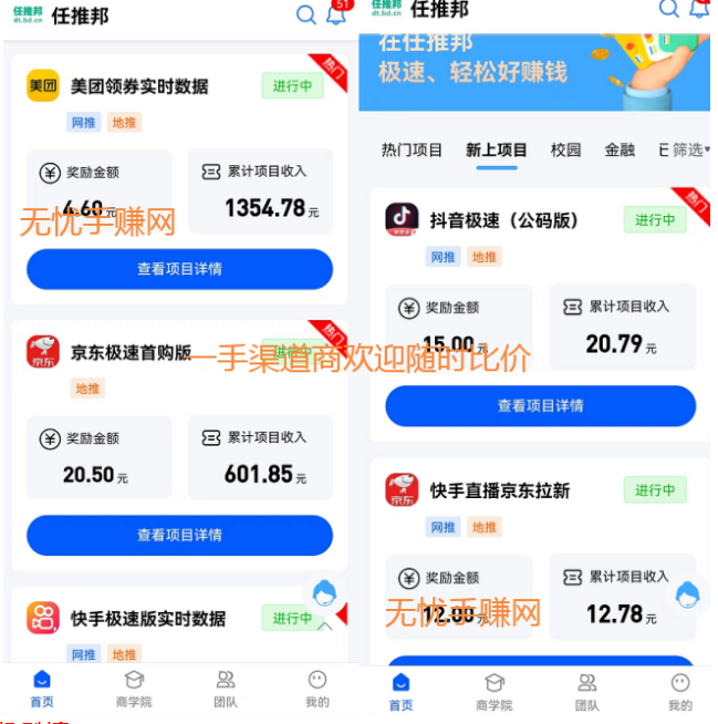 这里分享一款软件--任推邦,任务非常丰富而且佣金高,审核数据稳定,另外平台提现0门槛0手续费,并且基本几个小时就能到账,如果你可以好好研究地推行业,这块是能够日赚几百上千的!