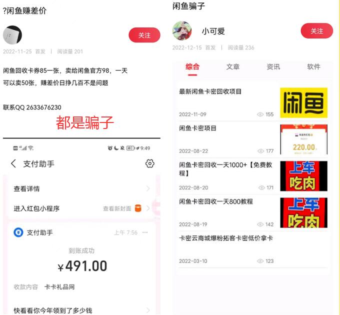 要说怎么被骗的,要说经历其实也是类似的,这位网友某天看到这个“赚钱路子”,于是联系骗子,当然也不会立马就大额投入,先是少量试了买了几张话费卡,然后的确可以在闲鱼回收,一次轻松利润十几元,为此骗子也是真金白银的投入了十多张话费卡。