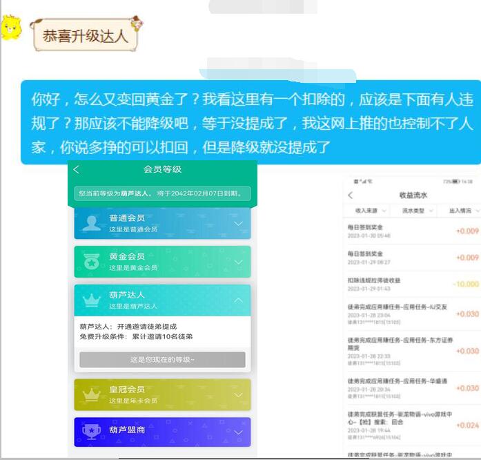 另外根据实测,葫芦趣玩/UU堂还有一个问题,下级需要首先有5个人完成首次5元的提现,之后我们才能升级达人然后获得提成佣金,而如果下面不小心有人作弊就又会降级,这点小编就试过虽然联系客服恢复了,但是这样连带影响还是很麻烦的。