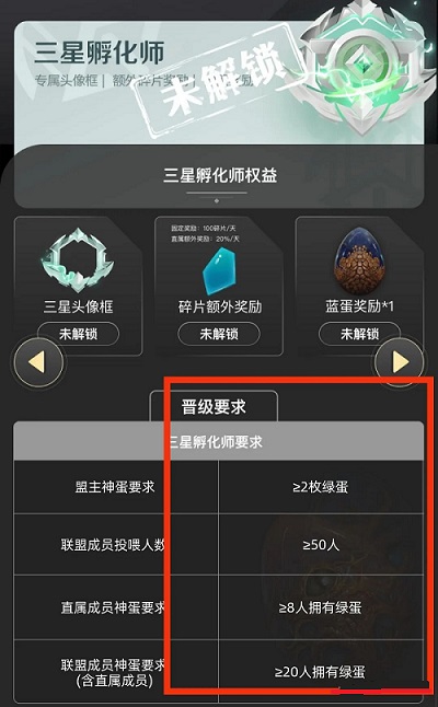 初级进阶一星很简单,团队成员喂养人数达标即可。特权:特殊头像框,每天领取10碎片白蛋奖励,白色可以孵化3只emo,21×3,63块价值。