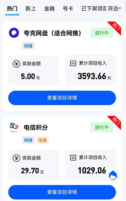 如果有网推经验,建议可以关注网盘推广类项目比如夸克和迅雷,任推邦独家对接这2款项目,看似单价比起各种地推项目不算高,其实这种项目曝光和裂变属性非常强大,收益上限甚至超过了地推任务,所以平台经常置顶夸克任务的推广!