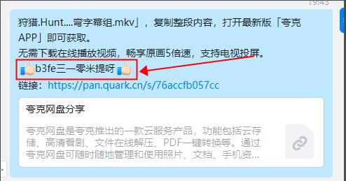 (3)找一个地方把公开链接,粘贴出来,类似下方的内容,红框标出来的就是口令码,用户单独复制这个打开夸克,就可以直接跳转到分享的资源