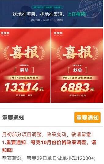 要做夸克拉新,建议选择靠谱的渠道,比如全网唯一独家对接夸克拉新的第三方平台【任推邦】,结算无疑要比私人靠谱的多,0门槛0手续费提现,随便对接很容易碰到骗子!这边注册就是一手的5.0元单价,大家认准了低于这个价格都不是一手的!