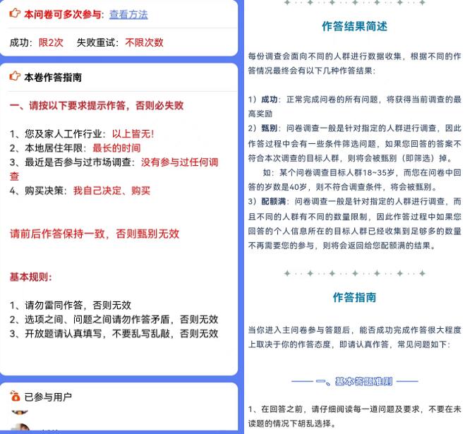 另外做每一份答卷之前,可以看看任务提示,里面有一些注意事项和选择要求,想做好这个项目不光需要牛一样勤快,更重要是玩透任务方心思,比如对方明显是做汽车销售调研,结果你选择都是没钱没打算买车,那自然只能透心凉!