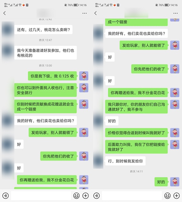 昨天这个小伙伴通过前期聊天,他对山海经的操作不是很了解,我之前的文章可能也有些细节可能没放图,就解答了一下他的一些问题。我是挺喜欢这类小伙伴的,我也愿意花时间解答。他的目的很明确,就是想卖花,说完解答完之后也没过多其他问题再次沟通了。