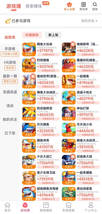 游戏钻App是目前主流的手机游戏赚钱平台,下载无需注册,直接打开选择自己感兴趣类型的游戏来玩即可,一款游戏的奖励非常丰厚,几千到几万不等,游戏奖励多,完成对应的游戏任务可以直接获得现金奖励,奖励直接到账余额,可以直接提现微信。