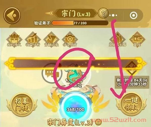 这里注意:千万不要去中间蓝色发光的宗门异变!点了你的贡献就没了只能拿几毛钱!你就没钱买花!得到平台的打发乞丐的几毛钱红包。