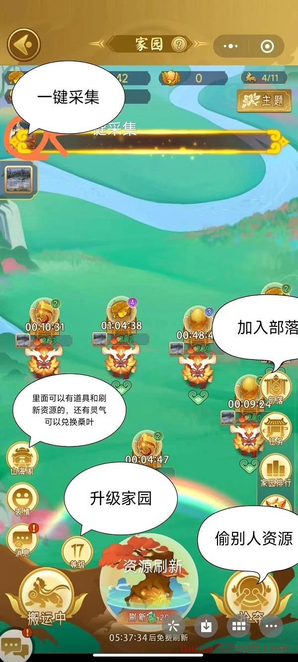新手入门先看上面的。等你的神兽等级达到10级,自动开启家园后再看下面的玩法!