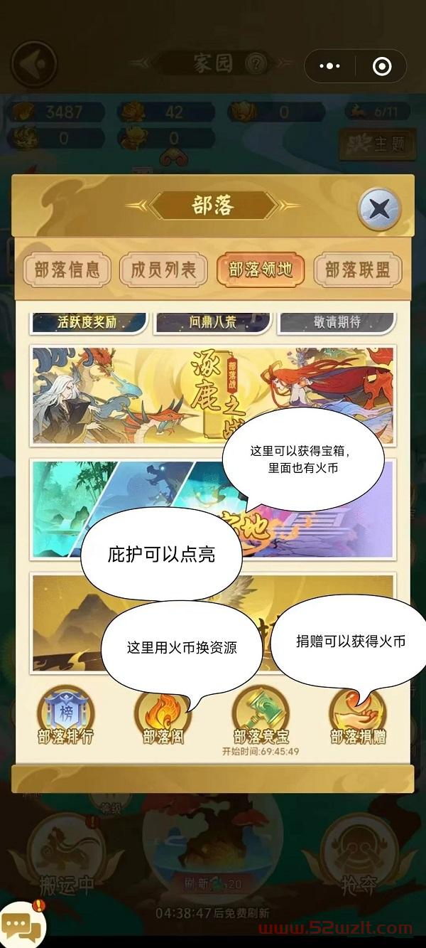 进入部落,有很多好玩的pk和活动,获得的奖励都可以兑换扶桑叶帮你升级家园,为后期赚更多做准备。