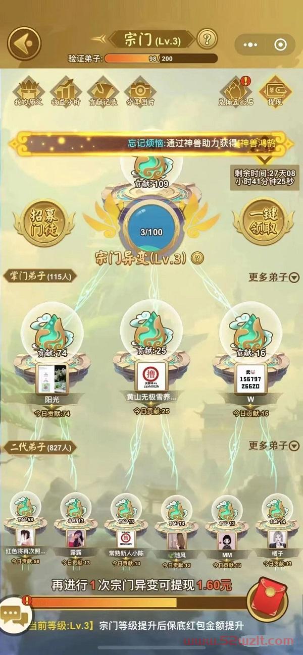 不要管后面多少人,你只需要看你的掌门弟子,其实上面只是分享了100多个人就裂变了近万人,然后每天就可以收益好几千。