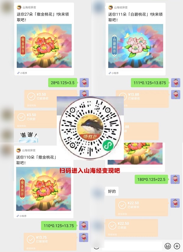 为了让大家无任何后顾之忧,小编长期高价回收你在山海经里的撒金桃花和白碧桃花以及后期家园的蛋、芯、神木、珍珠、火币等所有游戏道具,助力大家零撸多变现和快速打造团队管道收益,手把手教,帮带团队,教引流!