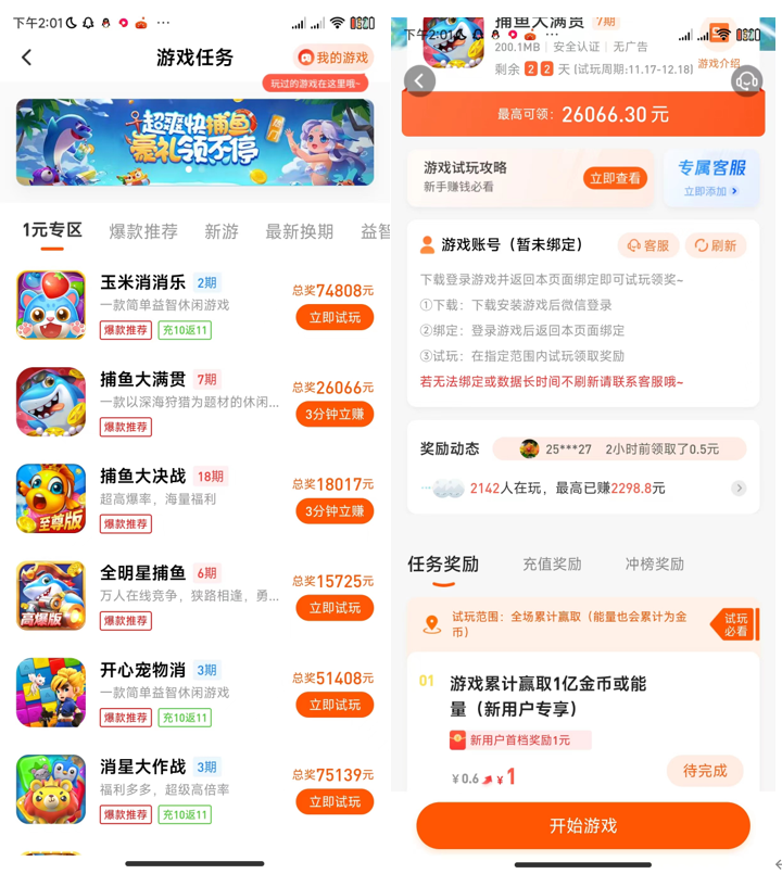 游戏试玩的项目原理是给游戏热热场子、查查bug,看看某种机型是否能够正常打开。这种任务适合有空闲的时候玩一玩,但是别想着去赚大钱。