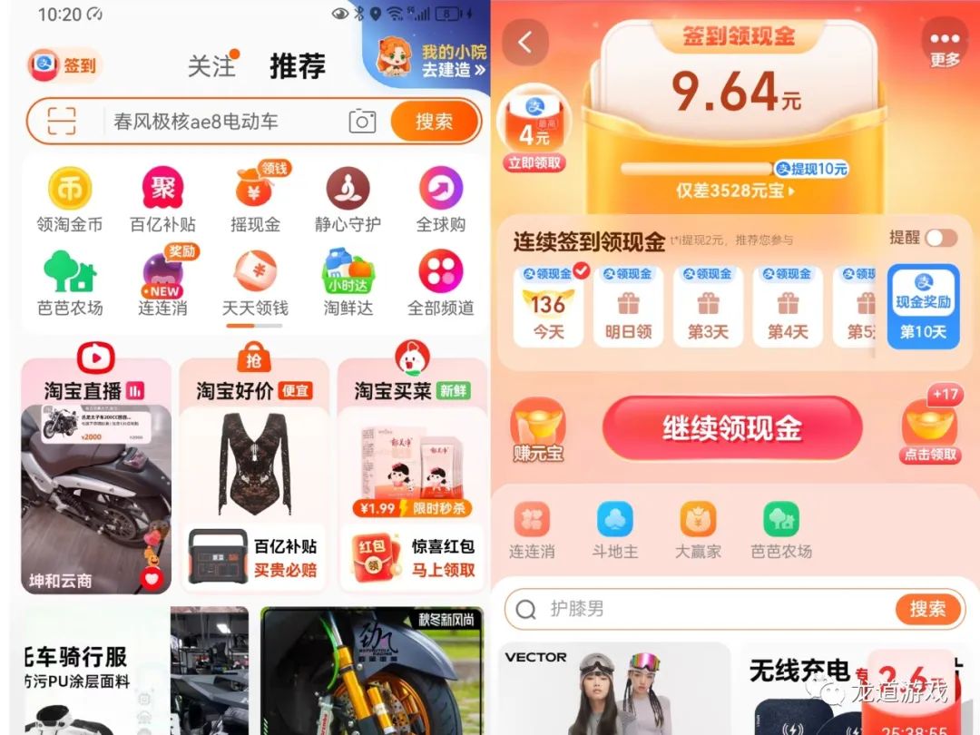 今天说说我们最熟悉的淘宝这个APP。淘宝进入首页,最左上角每天签到可以积累金币,10元就可以提现。具体到10元我才能测试提现,我还有几毛不到10元,希望到时候没有啥套路。其实我一直都走在测试的路上,没有人会给我说他到底能不能提现,那么自己摸着石头过河绝对也是明确的选择。我宁愿把所有的坑都走一遍,是不是我就会有丰富的经历,这也是财富的一部分。