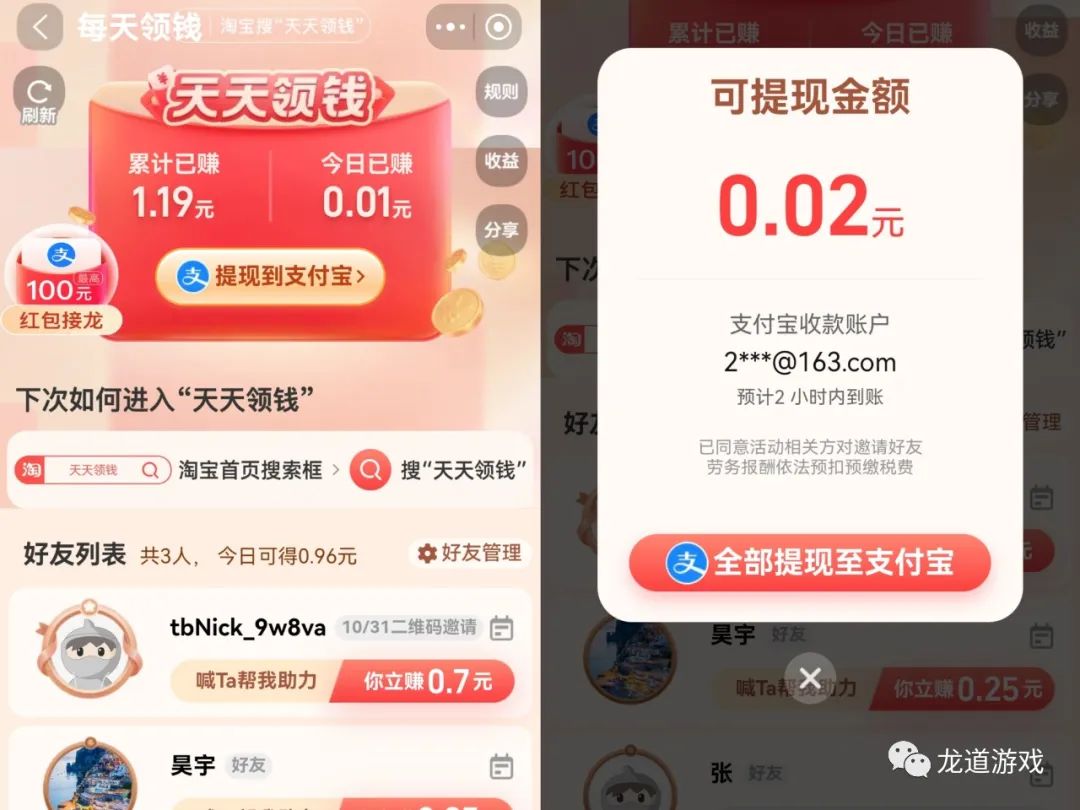 提现更是简单粗暴,两分钱也能提现到账支付宝。