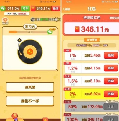 特点是,每过一关,那个能提现的比例就会涨一点。