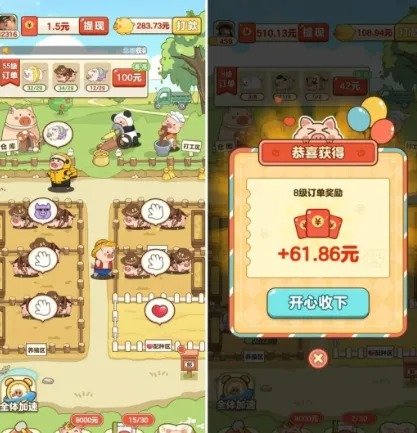 就是模拟养猪、卖猪。每成功卖掉一批猪,就能拿到相应的红包奖励。看上去很简单。