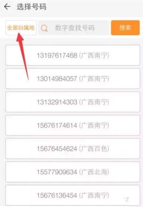 4、也可以选择归属地进行更换小号