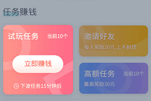 4、开始做任务,如下图所示,点击试玩任务栏目的“立即赚钱”进入任务页面。