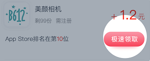 5、任务数量一般在下午4点以后最多,其他时间也有一些,但是偏少,只要看得到的任务都可以做。如下图:选中“美颜相机”任务,提示的是排名在12位。