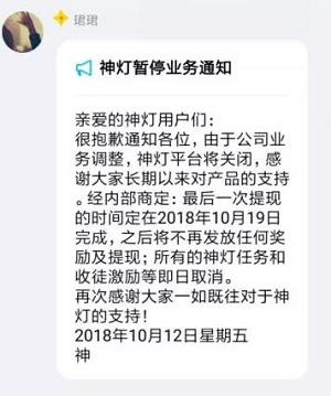 一、神灯今天下午通告 平台关闭