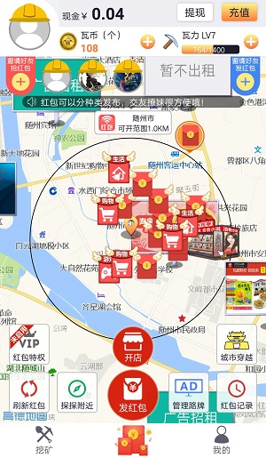 除了挖矿,在红包页面可以抢红包、发红包、发布广告、开店,支持用瓦币支付,价格不贵,大家可以在我的-常见问题里面学习掌握挖客APP操作攻略!