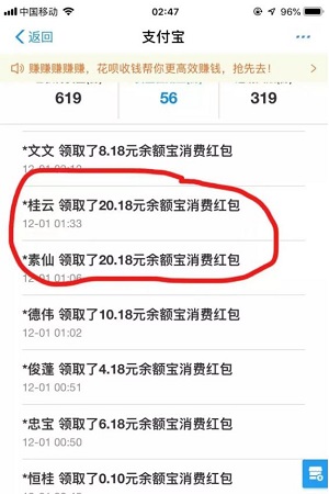 12月份,消费红包,余额宝红包,花呗红包额度都比较大(如图)每天都可以领。打开支付宝首页搜索“6793112”或者扫码领红包。