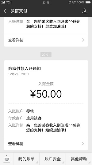 苹果手机主要就是上述几个试玩平台提现到账最快,大家可以全部下载下来,只要有时间都可以上去做任务,赚够一顿快餐钱、烟钱还是没问题的。另外比较好点的平台还有:imoney爱盈利、鼠宝、头号试玩、掉钱眼儿等。