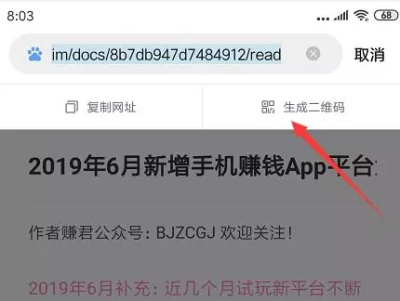 如图:小米浏览器 自带的链接生成二维码功能