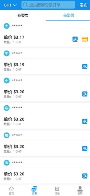 2、大家登陆后可以看到交易平台有很多已经发布好的买卖需求订单,完全看不到对方信息,也就是交易前没办法联系,匿名操作。