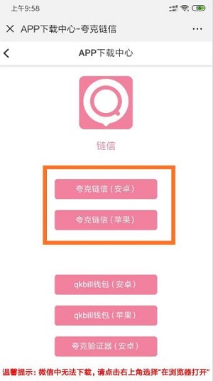 注册完成可以直接下载链信APP并安装,苹果和安卓浏览器请选择对应版本,目前是都支持的。