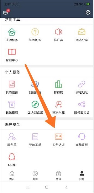 登录APP之后,第一步是先实名认证,按照下图所示,在个人中心,往下拉,找到“实名认证”,按照要求填写姓名和身份证号码,并刷脸完成认证,目前不需要上传身份证。
