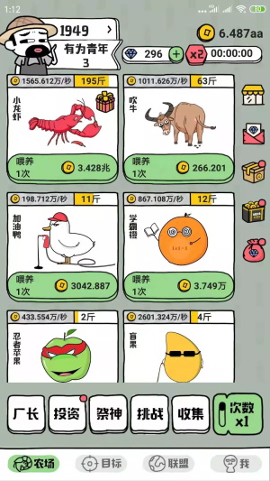 挑战:工厂养的东西,达到一定重量可以获得额外翻倍奖励