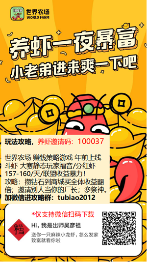 1.世界农场 近几天上线斗虾模式,有周度和月度大赛!可瓜分大额奖励!