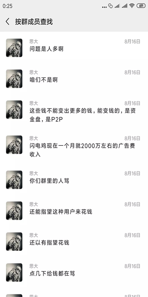 早中期的用户如果不提现,现在也可以实现利滚利,后期用户受到的影响,大概是因为赶上了3.15和两会,敏感期,以及当时“花生日记”被罚了700多玩。闪电鸡当时关闭了充值入口,砍掉了拜师模块,后期的用户确实受到了影响。