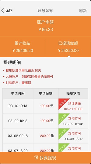 下面是小编截取其它用户的收益截图,不为别的,只是想说明,平台没问题,提现没问题,别人几万都能到账,不差你几元、几十、几百,所以放心搞起来吧!
