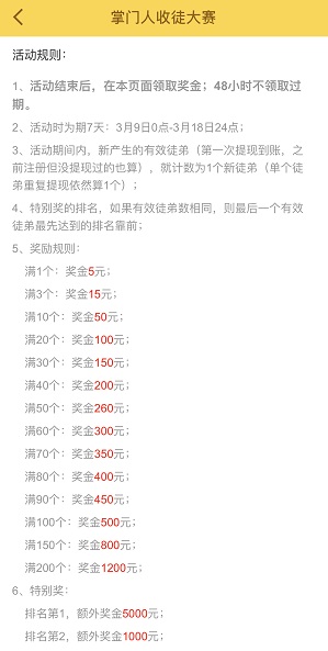 3、活动期间内,新产生的有效徒弟(第一 次提现到账, 之前注册但没提现过的也算),就计数为1个新徒弟 (单个徒弟重复提现依然算1个) ;