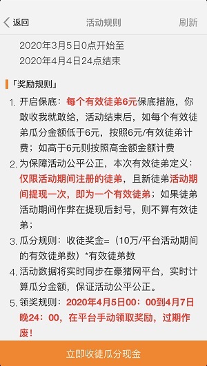 3.瓜分规则:收徒奖金= (10万/平台活动期间的有效徒弟数) *有效徒弟数