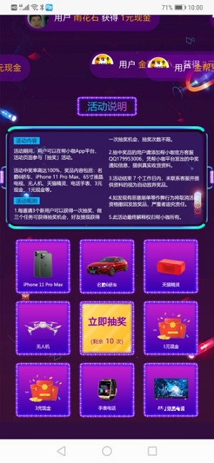 无限次抽奖!汽车、苹果手机、液晶电视、现金红包,最少1元,没有空奖!
