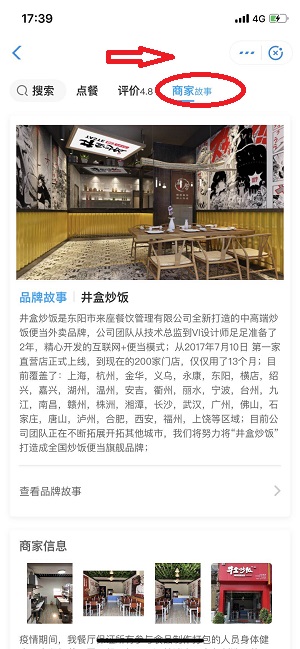 饿了么还有一个优势,点外卖的时候,我们不了解商家的实际情况,害怕遇到小作坊,在饿了么里,可以通过下图位置查看商家店铺信息,配的有图片,直接查看商家资质、是否卫生,小编喜欢这么干,大家也可以试试。