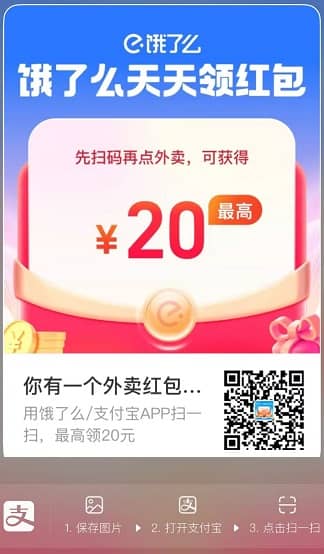 下面是饿了么红包券,新老用户都可以领取,支付宝扫码,人人有份。