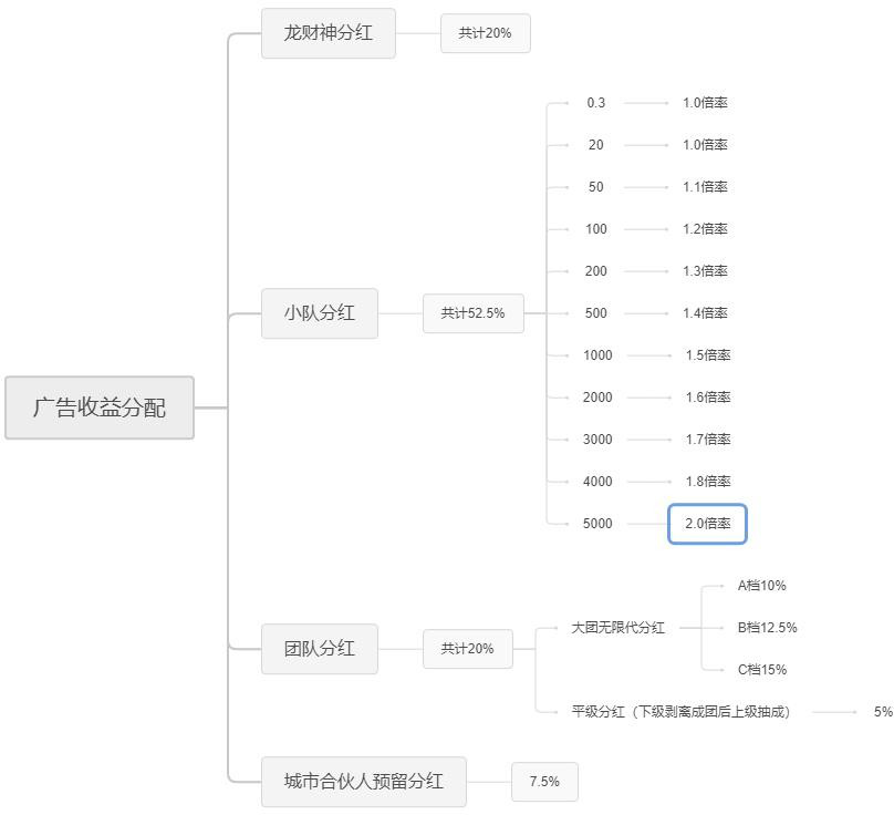 广告收益的20%将会分配给龙财神分红池,由拥有分红龙的用户等比分配。