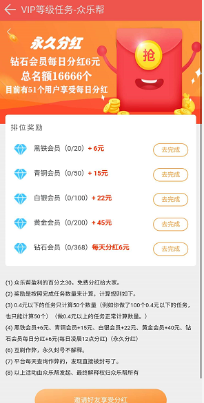众乐帮APP有一个任务排位系统,根据做任务的数量升段位还有额外奖励!