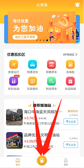 打开淘油集APP,点击底部加油图标,会显示附近加油站以及优惠情况,需要加油可以直接导航到加油站加油即可!