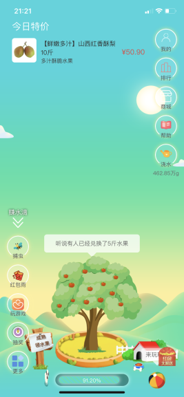 1.通过种水果获得收益,收获的水果可以进行售卖.也可兑换实物