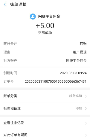 我自己的也提现到账了,30分钟到账~