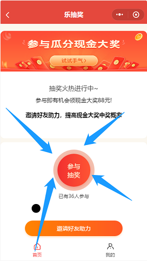 乐抽奖微信小程序,一个简单粗暴的小羊毛,每天早上9点开始,每个小时都可以参加1-2次抽奖,最高可以抽到88元,最低0.03元,一直到晚上12点结束!