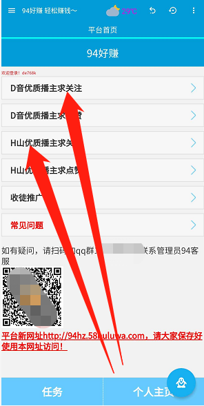 94好赚是挂机老平台小蝌蚪旗下的一个抖音挂机平台,目前支持抖音挂机、抖音火山版挂机,而且任务众多,点赞关注单价高,94好赚抖音关注单价在0.06元一个,抖音火山版的关注时0.05元一个,对比其他抖音挂机的平台单价高出很多,每天任务都会更新,加上近期94好赚官推出了自己的全自动挂机脚本,方便了绝大多数挂机的朋友,其他一些平台的挂机脚本都需要自费购买,大大增高了我们的成本,而94好赚自带免费全自动脚本!