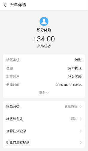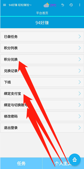 4、提现方式:支付宝提现,20000积分起提现(1万积分=1元)基本上都是秒到账