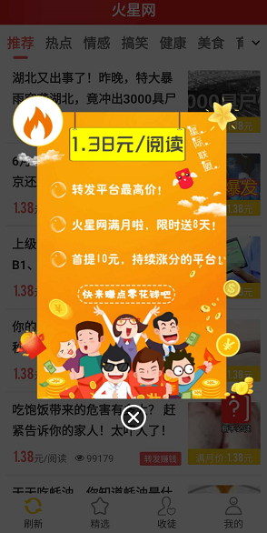 星际联盟旗下转发平台火星网APP,上线满月活动,单价限时提升到1.38元,为期8天!