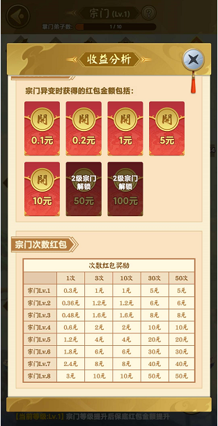 2.宗门变异领红包,奖励非常的丰厚,非常适合静态玩家